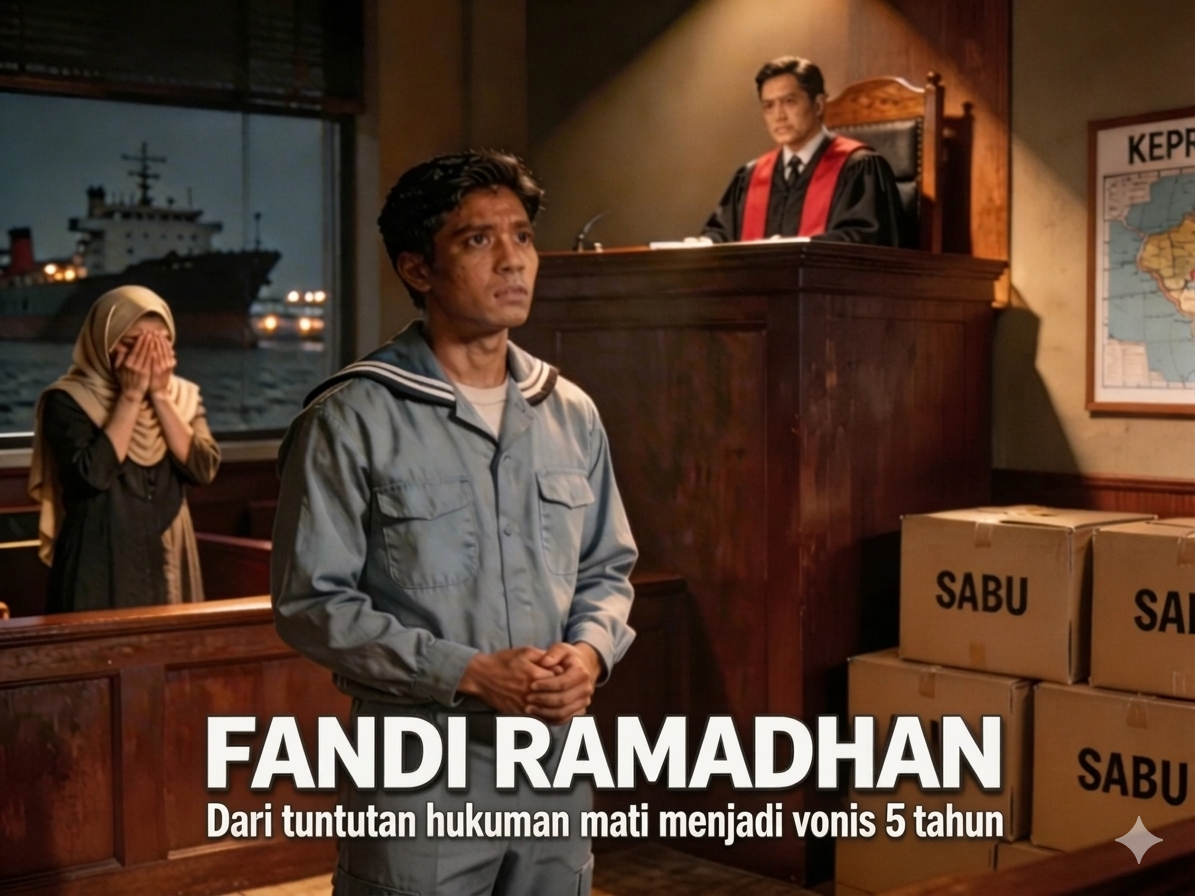 Fandi Ramadhan (24), anak buah kapal (ABK) MT Sea Dragon, divonis 5 tahun penjara – jauh lebih ringan dari tuntutan jaksa berupa hukuman mati.