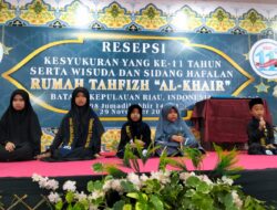 Batam, inlineintuisi.net – Rumah Tahfizh “Al-Khair” Batam, Kepulauan Riau, menggelar acara resepsi kesyukuran hari jadi yang ke-11 sekaligus wisuda serta sidang hafalan santri pada Sabtu, 29 November 2025 (bertepatan dengan 8 Jumadil Akhir 1447 H). Acara yang berlangsung khidmat ini dihadiri ratusan undangan, termasuk orang tua santri, tokoh masyarakat, dan para pendukung rumah tahfizh.