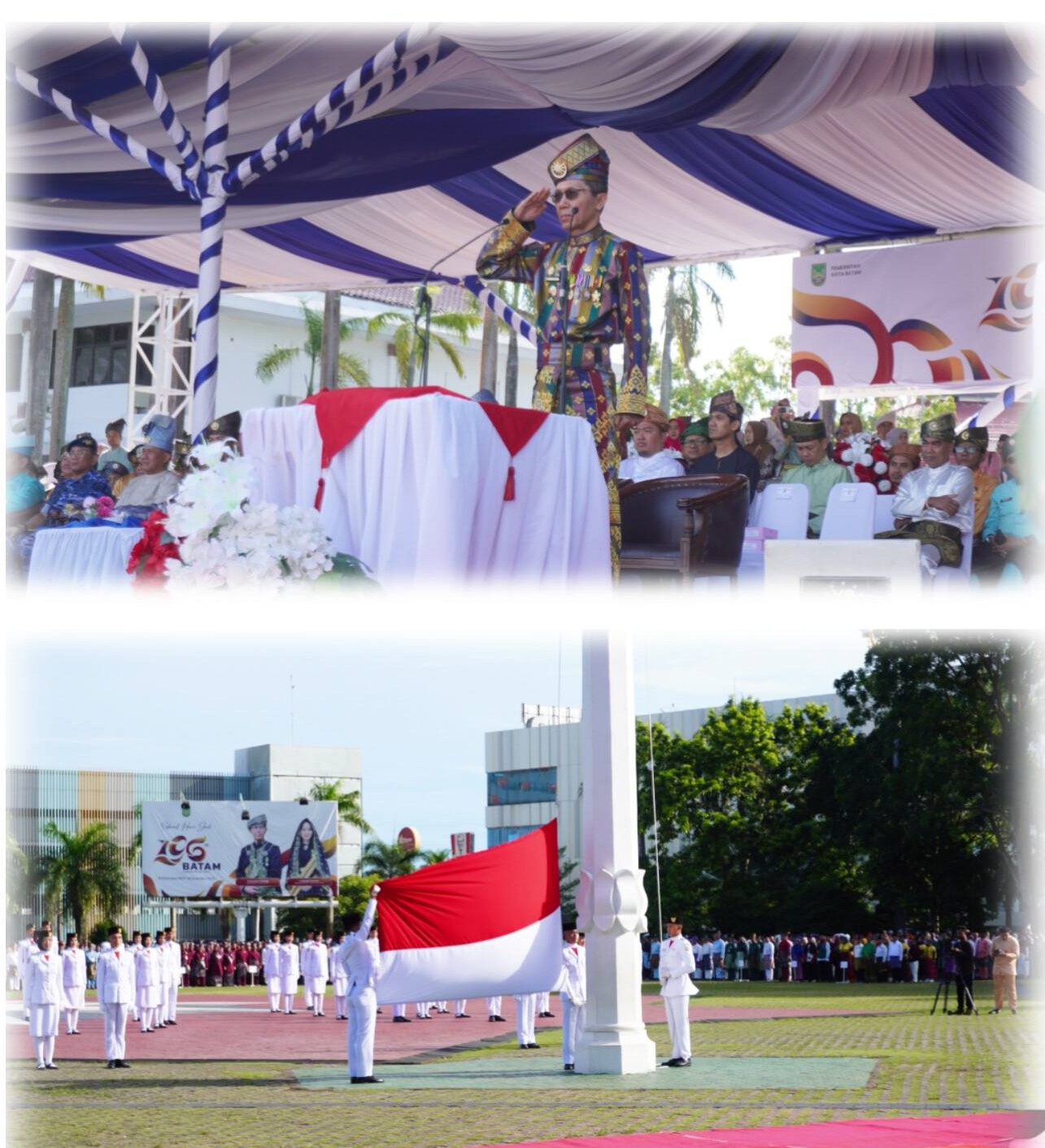 Wali Kota Amsakar Achmad bertindak sebagai inspektur upacara. Ia menegaskan bahwa HJB bukan hanya penanda usia kota, melainkan momentum mengenang perjalanan sejarah Batam sejak surat perintah Yang di-Pertuan Muda Riau-Lingga pada 18 Desember 1829. Dari pulau sederhana, Batam berkembang menjadi kawasan strategis nasional dengan milestone seperti kehadiran Pertamina (1970), Otorita Batam (1973), hingga status otonom dan kawasan perdagangan bebas saat ini.