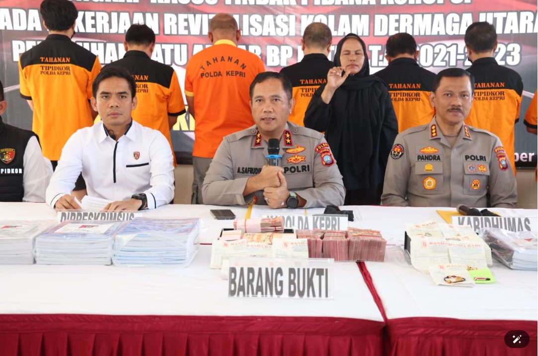 Para tersangka diamankan di Jakarta, Bali, dan Batam, kini ditahan di Rutan Polda Kepri. Proyek senilai ratusan miliar seharusnya rampung 390 hari (Okt 2021–Nov 2022), tapi diputus kontrak Mei 2023 meski pembayaran telah Rp63,6 miliar.