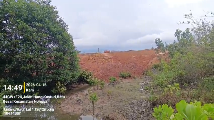 Penimbunan mangrove di Jalan Hang Kasturi, Nongsa Batam, (16 April 2026) hingga kini masih berjalan.