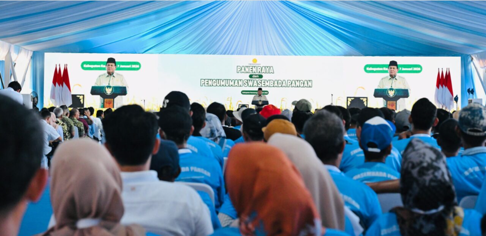 “Dengan mengucap bismillahirrahmanirrahim, pada pagi hari ini, hari Rabu 7 Januari tahun 2026, saya Prabowo Subianto Presiden Republik Indonesia, dengan ini mengumumkan telah tercapainya swasembada pangan tahun 2025 bagi seluruh bangsa Indonesia,” ujar Presiden Prabowo.